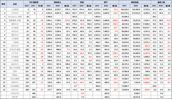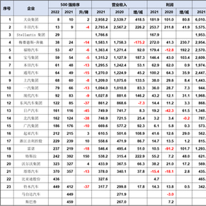 1.关于2022年500强榜单中汽车企业的变动