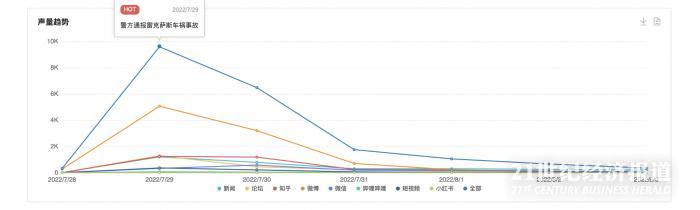 21世纪经济报道旗下21世纪新汽车研究院联合大数据及AI智能应用提供商数说故事,通过对不同社媒的反馈、渠道的分析、以及触达人群的洞察,从事件走向、传播概况、受众画像、产业观点四个方面对雷克萨斯车祸事件进行复盘,更客观地还原这一事件的影响。