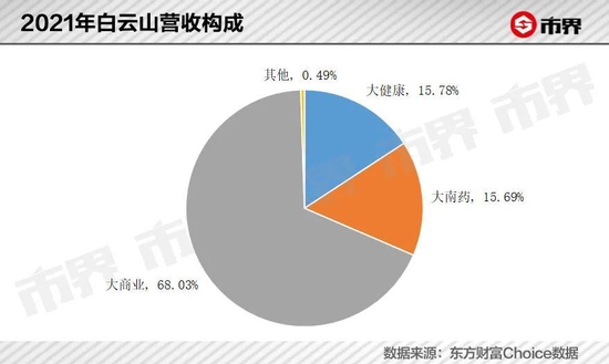 一位医药行业专家告诉市界:“医药的商业流通是一个营收规模大,但利润少的生意。”这种属性也导致白云山大商业板块的毛利率常年徘徊在7%左右,2021年仅为6.64%。与另外两大板块大南药、大健康超40%的毛利率不可相提并论。