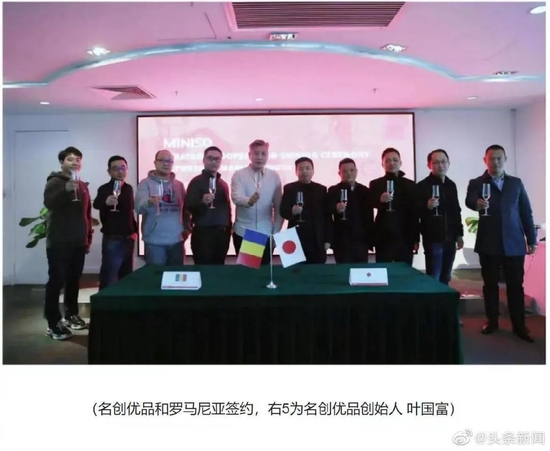 除此之外,有媒体翻出了名创优品2015年至2018年间,业务扩展至马来西亚、罗马尼亚、以色列、塞尔维亚、亚美尼亚等地时,签约仪式上悬挂日本国旗的照片。