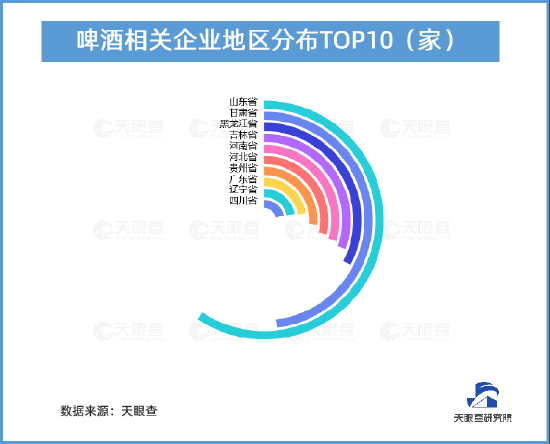 天眼查研究院分析发现,从消费地看,一二线城市是精酿啤酒品牌主要用户聚集地,一是消费力更强,二是年轻人生活文化容易形塑和传播。从企业注册地域分布来看,山东省精酿啤酒相关企业数量位居全国第一,占比达18.4%,遥遥领先。其次,辽宁、江苏、河南等省份也均有超过7%的相关企业。