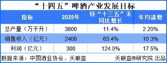 现在,中国人每年要消费429.6亿升的啤酒,平均每人每年喝掉约30升。国家统计局数据显示,2021年我国啤酒产量累计达3562.4万千升,同比增长5.6%。根据“十四五”中国酒类产业的发展目标,啤酒产业到2025年,产量达3800万千升,比“十三五”末增长11.4%,年均递增2.2%;销售收入达到2400亿元,同比增长63.4%,年均递增10.3%;实现利润300亿元,同比增长124.0%,年均递增17.5%。