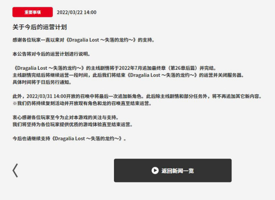 《失落的龙约》官方声明