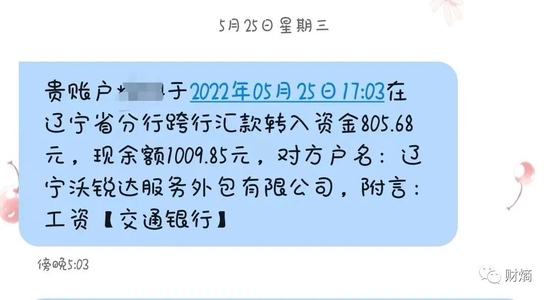 直到5月25日,沈阳美邦员工李小麦才收到3月份工资 李小麦提供