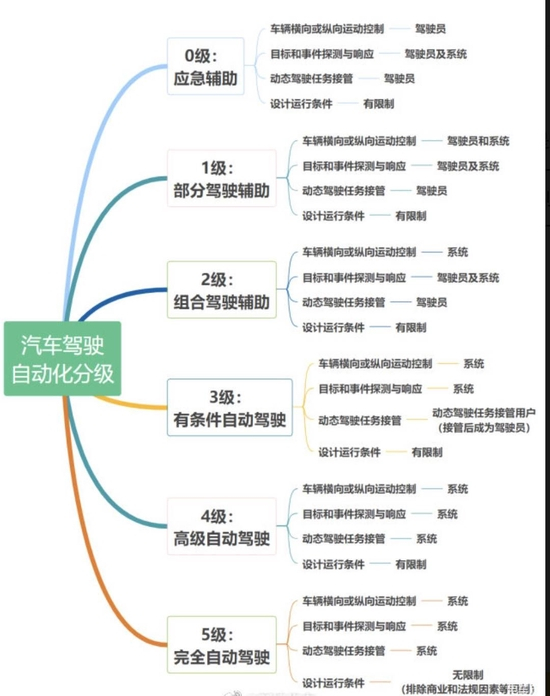 汽车驾驶自动化分级标准。(网络截图)