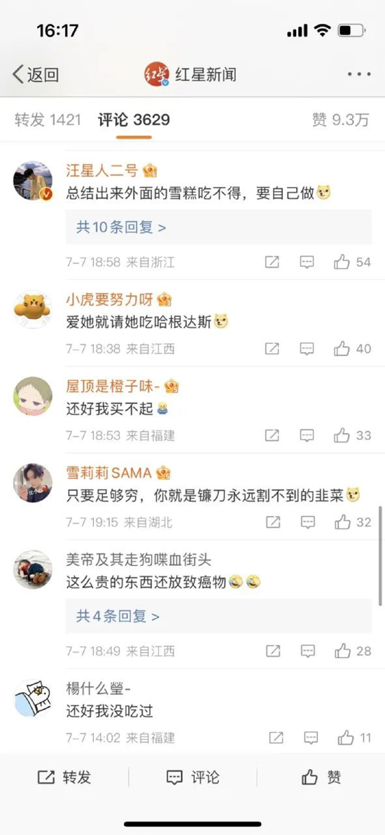 但是当其不再显得“很潮”,并且其价格让消费者感觉像智商税的时候,就很少会有人愿意去购买,哈根达斯会成为可以平替的非必要之物。