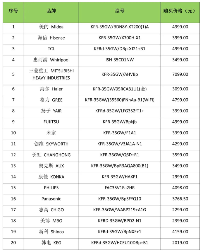 本次比较试验样品由工作人员以普通消费者的身份从电商平台购买,涉及20个品牌的20套样品。购买价格范围从2019元/台到7099元/台。
