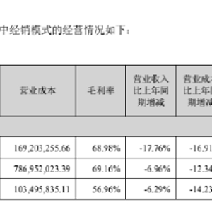 从这组数据来看,汤臣倍健线下渠道的毛利率有所改善,但收入仍没有出现止跌的迹象。此外,汤臣倍健的经销商在线上业务的表现不甚理想,收入大幅下滑,毛利率也出现微降,经销商向线上转型或许面对一定的困难。