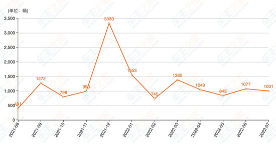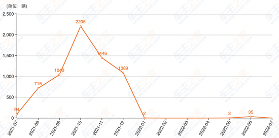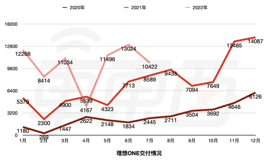 从2020年6月份开始,交付量呈现明显的上升之势,并在当年12月,创下当时的新高,月交付量突破了6000台。