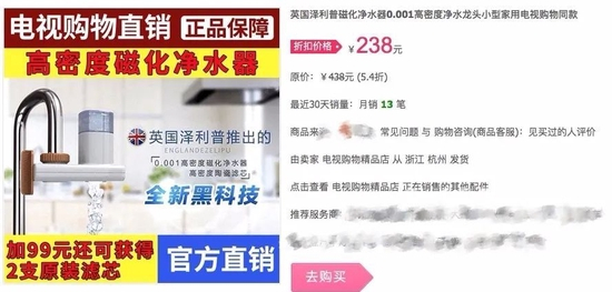 原标题:原价399元的“英国泽利普”净水器只卖39元?记者体验电视购物揭开骗局......