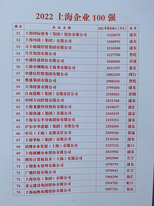 8月30日,在上海市企业联合会、上海市企业家协会、上海市经济团体联合会、解放日报联合召开的2022上海百强企业新闻发布会上,2022上海企业100强、上海制造业企业100强、2022上海服务业企业100强、2022上海民营企业100强、上海新兴产业企业100强等系列榜单正式发布。
