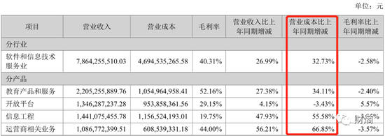不过,财熵发现,科大讯飞上述毛利率下降的原因有待商榷,因为并不是只有某个业务毛利率下降。2022年上半年,除开放平台外,公司主要业务的营业成本增长明显要快于营业收入,这在一定程度上反应了公司成本控制及定价权问题。