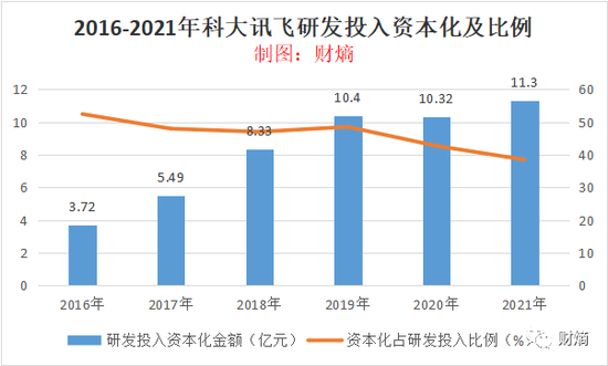 2021年年报显示,科大讯飞研发费用的无形资产摊销高达10.84亿元,同比增长26%。这意味着,科大讯飞每年会因摊销“抵消”超10亿的利润,而且这是中期乃至长期的事。