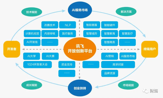 开放平台,是一个比较有想象力、且备受关注的业务。这块业务简单来说就是,科大讯飞提供数据和解决方案,应用场景交给别的企业来做,公司起到“承上启下”的作用,其目的在于构建平台生态的丰富性。