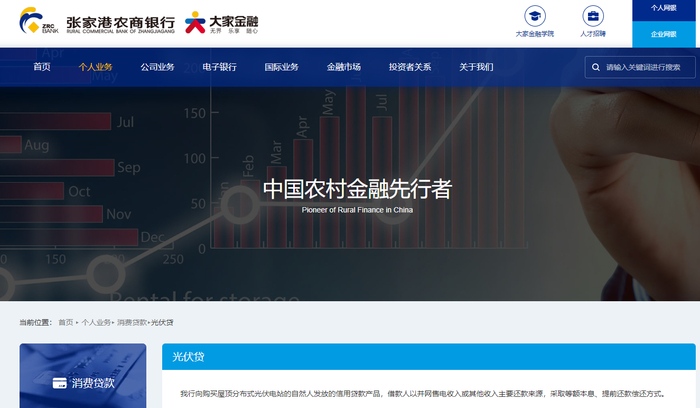 例如,张家港行(002839.SZ)官网介绍,其光伏贷是“向购买屋顶分布式光伏电站的自然人发放的信用贷款产品,借款人以并网售电收入或其他收入为主要还款来源,采取等额本息、提前还款偿还方式。”