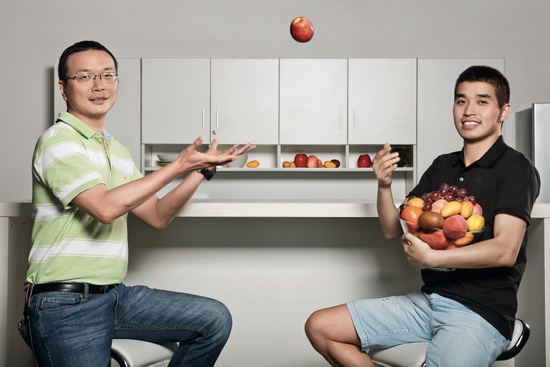 每日优鲜联合创始人曾斌(左)和徐正。摄影:王攀