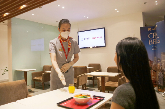 附图:北京海翼轩贵宾室工作人员为旅客提供服务(刘计语 摄)