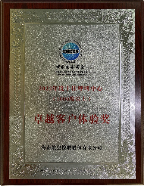 附图:海南航空呼叫中心荣获年度中国“十佳呼叫中心卓越客户体验奖”