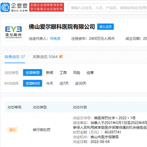 近日,佛山爱尔眼科医院有限公司(以下简称佛山爱尔眼科)因违规使用医保基金于今年8月4日被罚40.69万!