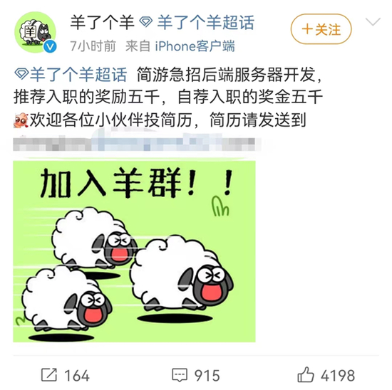 为此,官方紧急开出5000元“悬赏令”,急聘游戏维护相关工作人员。