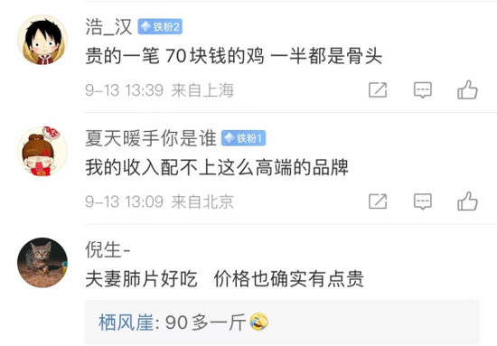“70块钱的鸡,一半都是骨头”、“19年以前爱买,19年以后涨价太狠了”、“好吃是好吃,但是太贵了”……不少消费者如是说到。