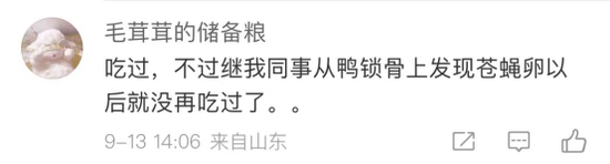 上述评论区的投票中也有人表示,“鸭锁骨上发现苍蝇卵”、“牛肚常常有怪味,颜色白得不正常”。
