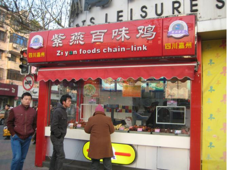 由于上述二者的差别,紫燕百味鸡和煌上煌、周黑鸭、绝味食品等门店的选址差别都很大,后者会在商业街或者人流量较大的地方,而紫燕百味鸡的选址都是在菜市场或者菜市场附近、社区等等。