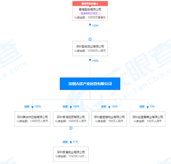 随着股权变动,物流投发,吉祥产运名下其他产业也一并实现了转移,其中包括注册资本金1.3亿的深圳莱华供应链有限公司;以及深圳富宝楼物业有限公司,和深圳创宝展商业有限公司。