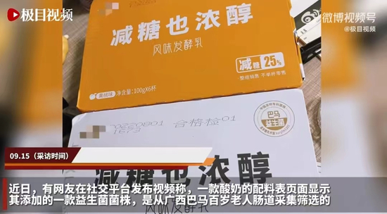 9月15日,该酸奶所属公司皇氏乳业回复北京商报记者称,上述产品为皇氏乳业“减糖也浓醇”6连杯原味酸奶,其中添加的菌种是公司2013年在巴马进行相关取样工作后,分离提取出的鼠李糖乳杆菌hsryfm1301菌种,并获得了相关专利。关于宣传用语过于直白的问题,很抱歉令消费者感到不适,已经反馈给相关部门,将对产品包装与宣传语进行优化和改进。