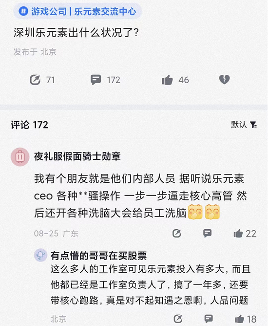 据笔者了解到的,今年8月底,脉脉有人爆料称深圳乐元素此次团队震荡系因制作人与高管发生冲突,帖子发布后引发网友热议。
