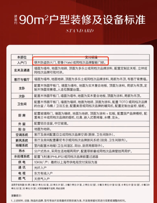 而此前记者以买房人身份向置业顾问询问此事时,得到的回答是:“并没有降标,只是我们条款写得比较严谨,而且关于入户大门等的装修标准也公示了,比原先的还要好,门锁还换成进口品牌了。”