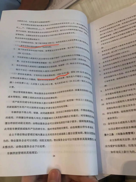 更令业主们难以接受的是,前期承诺的400-500元/月停车租金,变成了合同上的1000元-1200元/月。
