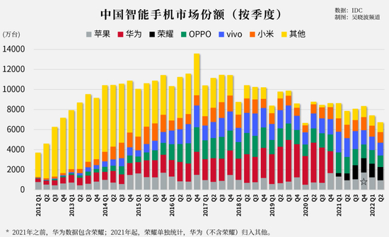 上一次苹果拿下国内冠军,还是在2015年。上一次苹果拿下20%以上的国内份额,还是2012年,当时它的对手都不是“荣米ov”,而是“中华酷联”和三星。