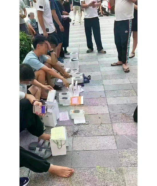 黄牛摆地摊卖iPhone 14