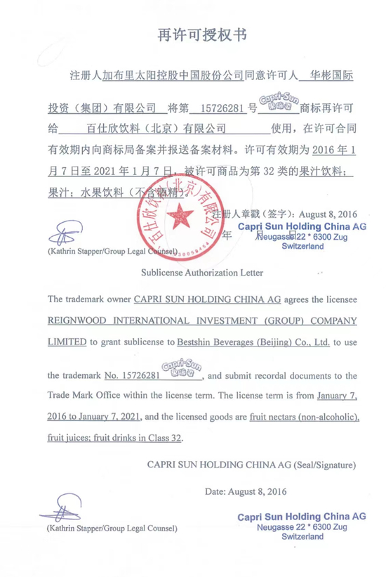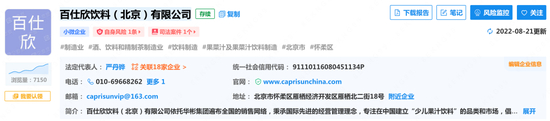 工商信息显示,百仕欣饮料(北京)有限公司成立于2014年3月11日,注册地位于北京市怀柔区雁栖经济开发区雁栖北二街18号,法定代表人为严丹骅(严彬之女,同时也是华彬集团执行董事)。该公司由华彬国际投资(集团)有限公司100%持股。