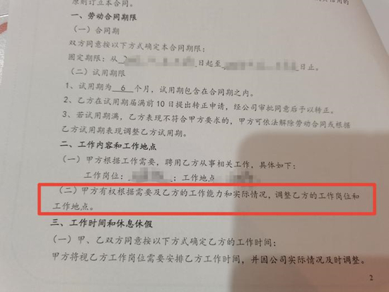 伊丹合同里的调岗条款/受访者供图