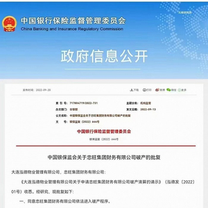 9月20日,银保监会官网显示,银保监会作出对忠旺集团财务有限公司破产的批复,同意该公司进入破产程序。