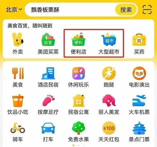 近日,美团APP首页改版,顶部新增“美食百货,随叫随到”专区,改版后的首页顶部专区内设置了“外卖”、“美团买菜”、“超市便利”、“品质百货”、“买药”等五个入口。