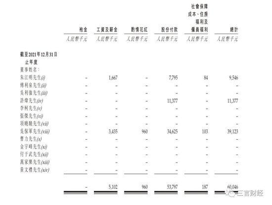 根据威马汽车招股书显示,威马汽车共有11名董事(含4名独董)。公司以袍金、薪金、退休福利计划供款、酌情花红、房屋津贴以及其他实物利益支付薪酬。