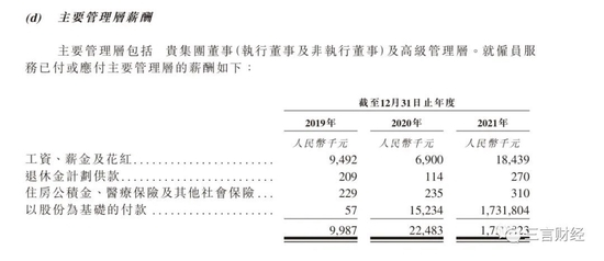 2019年至2021年,威马汽车向董事支付的薪酬总额分别为998.7万元,2248.3万元和17.51亿元。值得注意的是,威马汽车2021年以股份为基础的付款就高达17.32亿元。