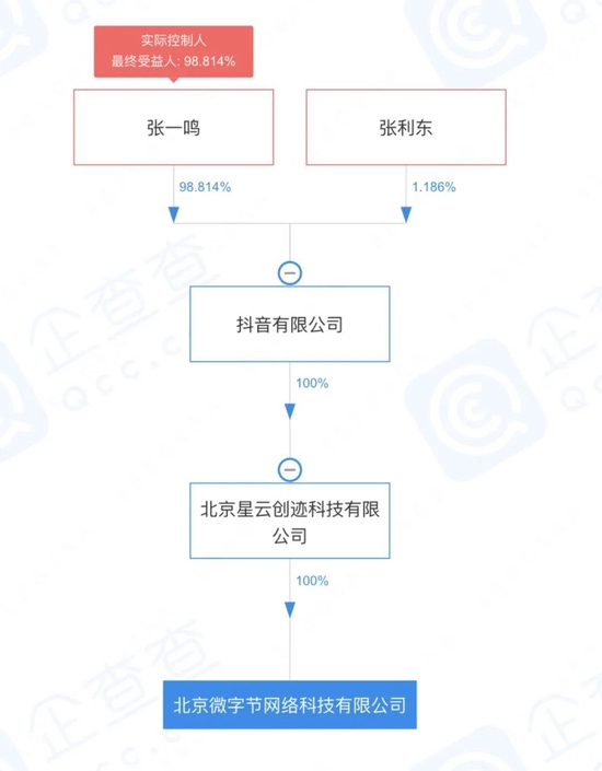住小帮APP的运营主体为北京微字节网络科技有限公司(简称“微字节”),实控人张一鸣的最终受益股份达98.81%。微字节被装在北京星云创迹科技有限公司(简称“星云创迹”),后者为字节跳动全资子公司。