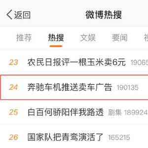 9月28日下午,#奔驰车机推送卖车广告#登上微博热搜,引发网友热议。