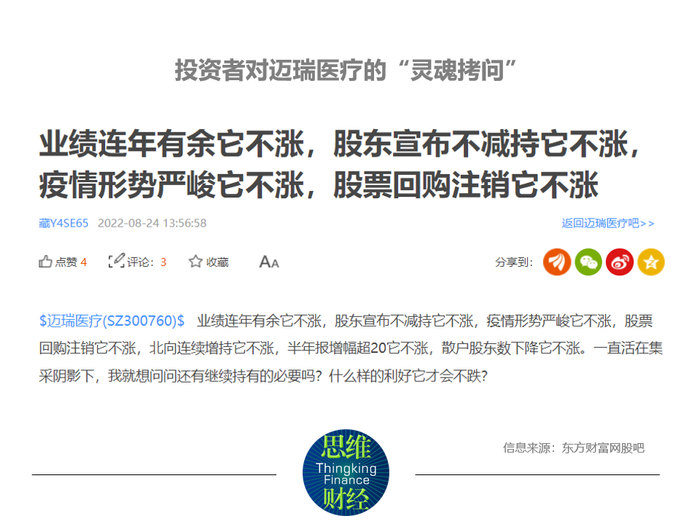 本来,迈瑞医疗2022年中报表现尚可,但难挽局面。因此,便引起投资者对迈瑞医疗的“灵魂拷问”。