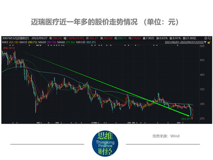 自2022年中报发布后,持续低迷的股价,为迈瑞医疗高增长带来一丝不详信号。到9月26日公司股价创下年内最低价253.37元/股。作为机构“抱团”的大白马,瞬间,迈瑞医疗的“闪崩”行情也引起市场热议。为此,公司还紧急召开投资者会议。