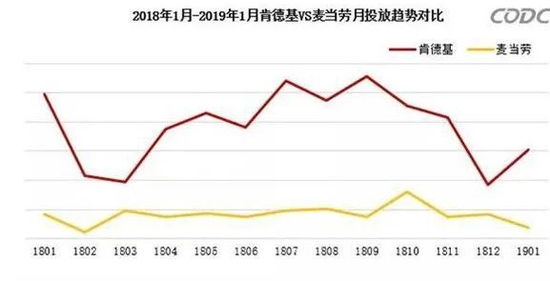 2018年1月—2019年1月,麦当劳与肯德基的广告投放比较。图源:CODC户外广告研究