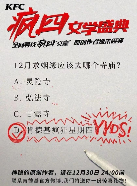 肯德基顺应热度举办了“疯四文学盛典”