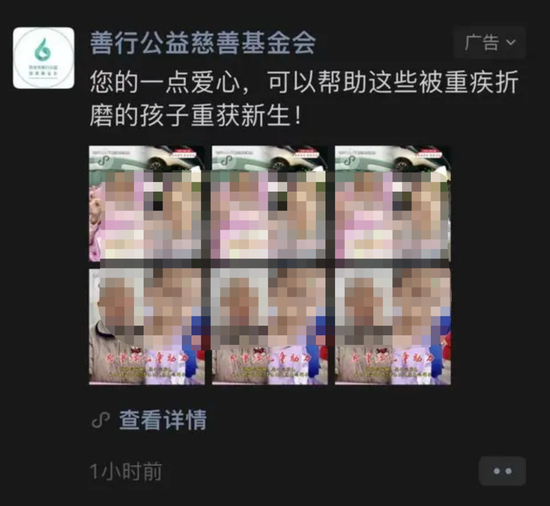 西安市善行公益慈善基金会在某互联网平台发布的广告。