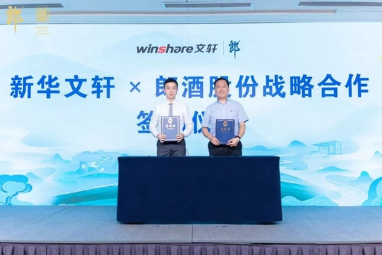 ▲郎酒股份副董事长汪博炜(左)与新华文轩总编辑陈大利(右)签署战略合作