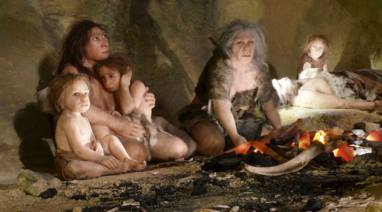 克罗地亚克拉皮纳尼安德特人博物馆里再现的尼安德特家庭场景