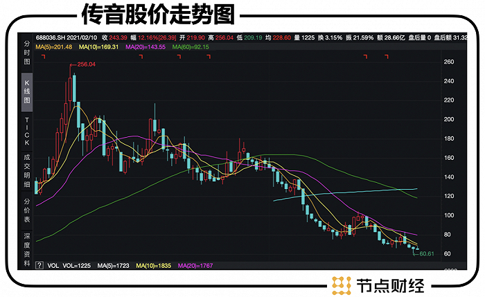 从2021年开始,资本市场对传音控股的热情开始退却,公司股价的走势急转直下,与此前刚好相反,目前的市值只剩536.4亿元。